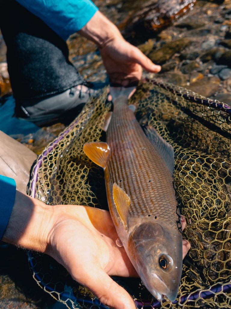 We had a great day fly fishing for graylings with a top guide Alberto. I fished with my son and Alberto intuitively knew who to help at the right moment. We learned a lot, caught close to 10 grayling in a beatiful scenery of the Italian Alps, near the Swiss border. The day ended with a great dinner in an Alpine Chalet, eating blue pasta.